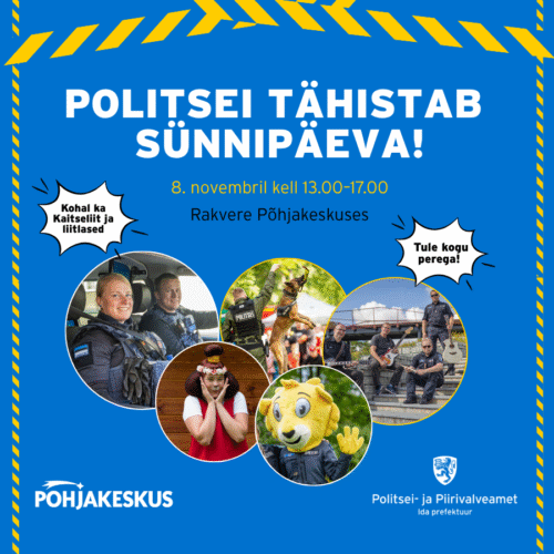 Tule kogu perega! Ida prefektuur tähistab politsei ja piirivalve sünnipäeva koos Kaitseliiduga Rakvere Põhjakeskuses. Pisikestele detektiividele õpetavad sõrmejälgede võtmist kriminalistid Politseinikud jagavad nõu, kuidas liikluses turvaliselt liigelda – nii valges kui pimedas…